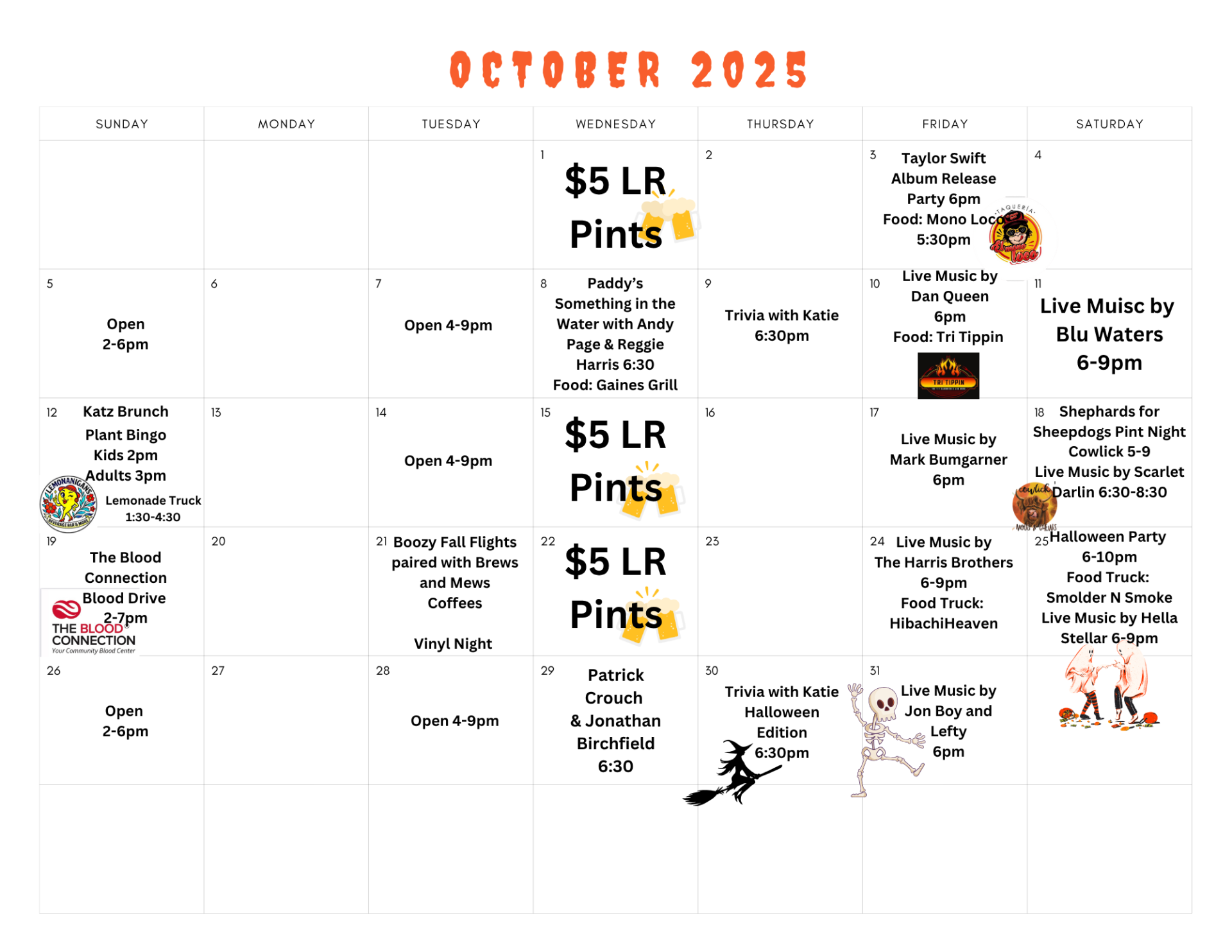 We are a family owned brewery offering 16 Taps filled with our brewed-on-site craft beer, cider and the occasional guest taps. Guests may visit the taproom for patio seating, indoor seating and To-Go beer. We are kid and dog friendly but kids must be supervised at all times and dogs must remain on a leash. Not all dogs enjoy a crowd or other dogs so please use good judgement when deciding to bring your furry friends.